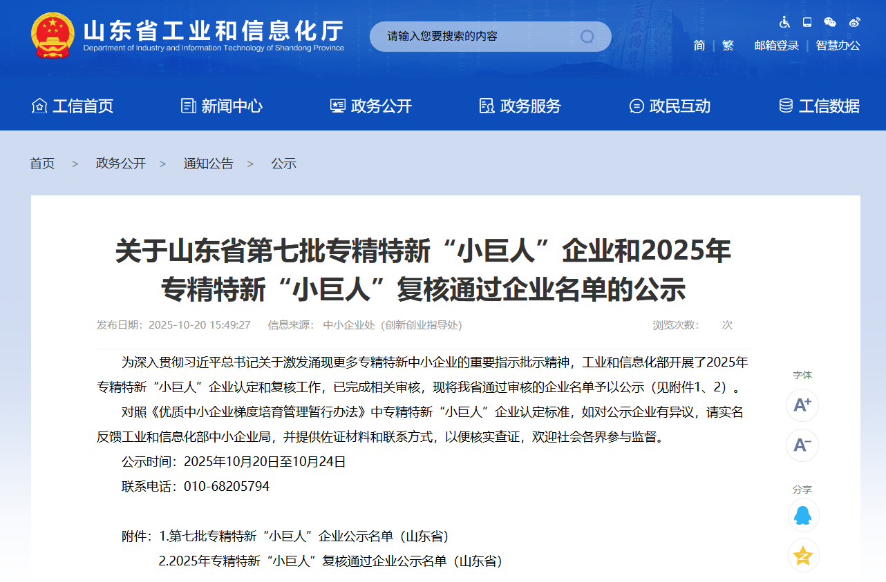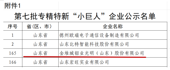 近日,山东省工业和信息化厅对国家工业和信息化部认定的第七批专精特新“小巨人”企业名单予以公示。金钼光明凭借在专业化、精细化、特色化、创新能力及市场影响力等方面的卓越表现,成功入选该国家级权威认定名单,标志着公司正式迈入国家级领先企业行列。
